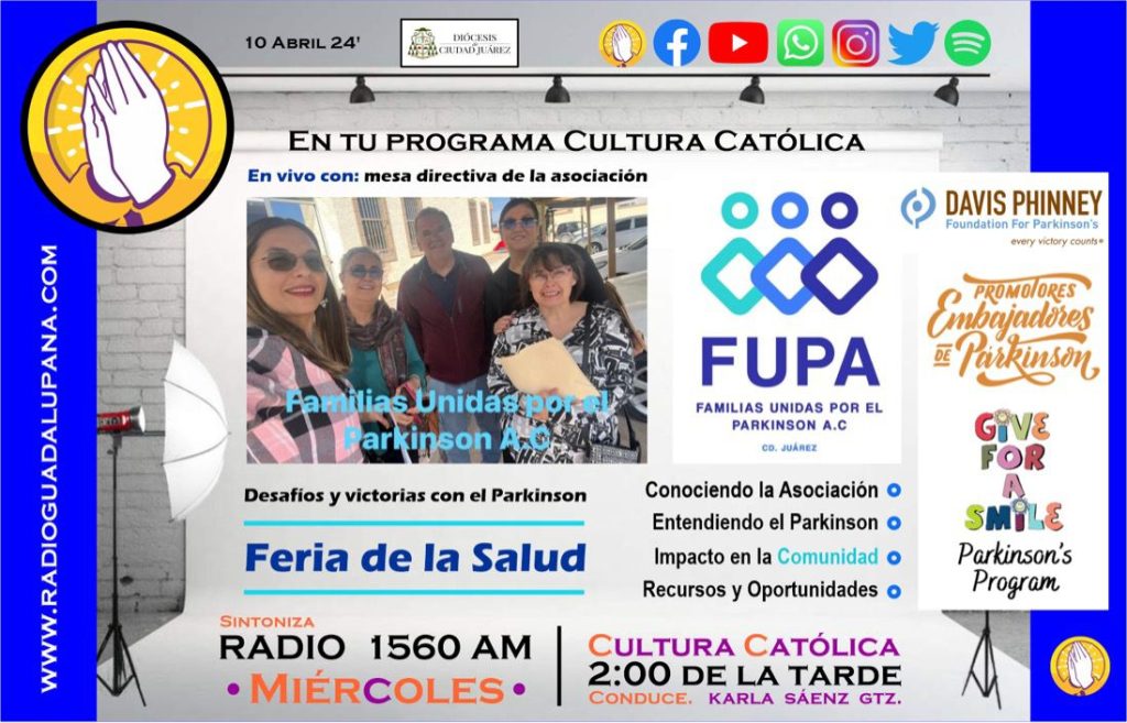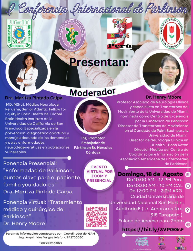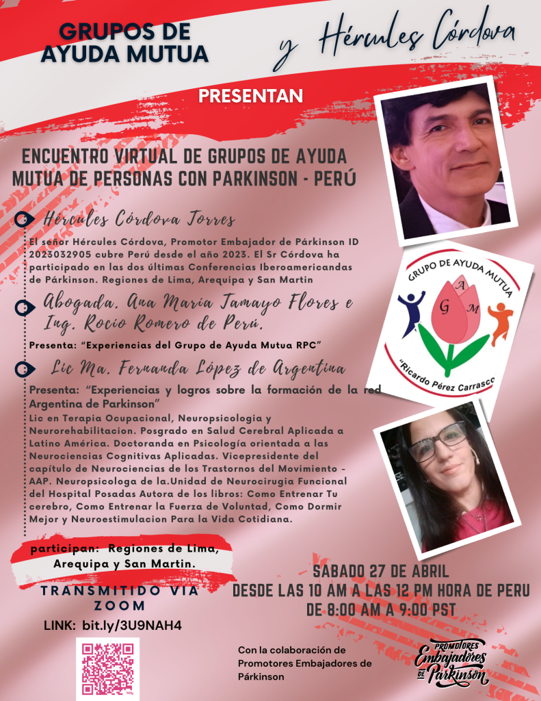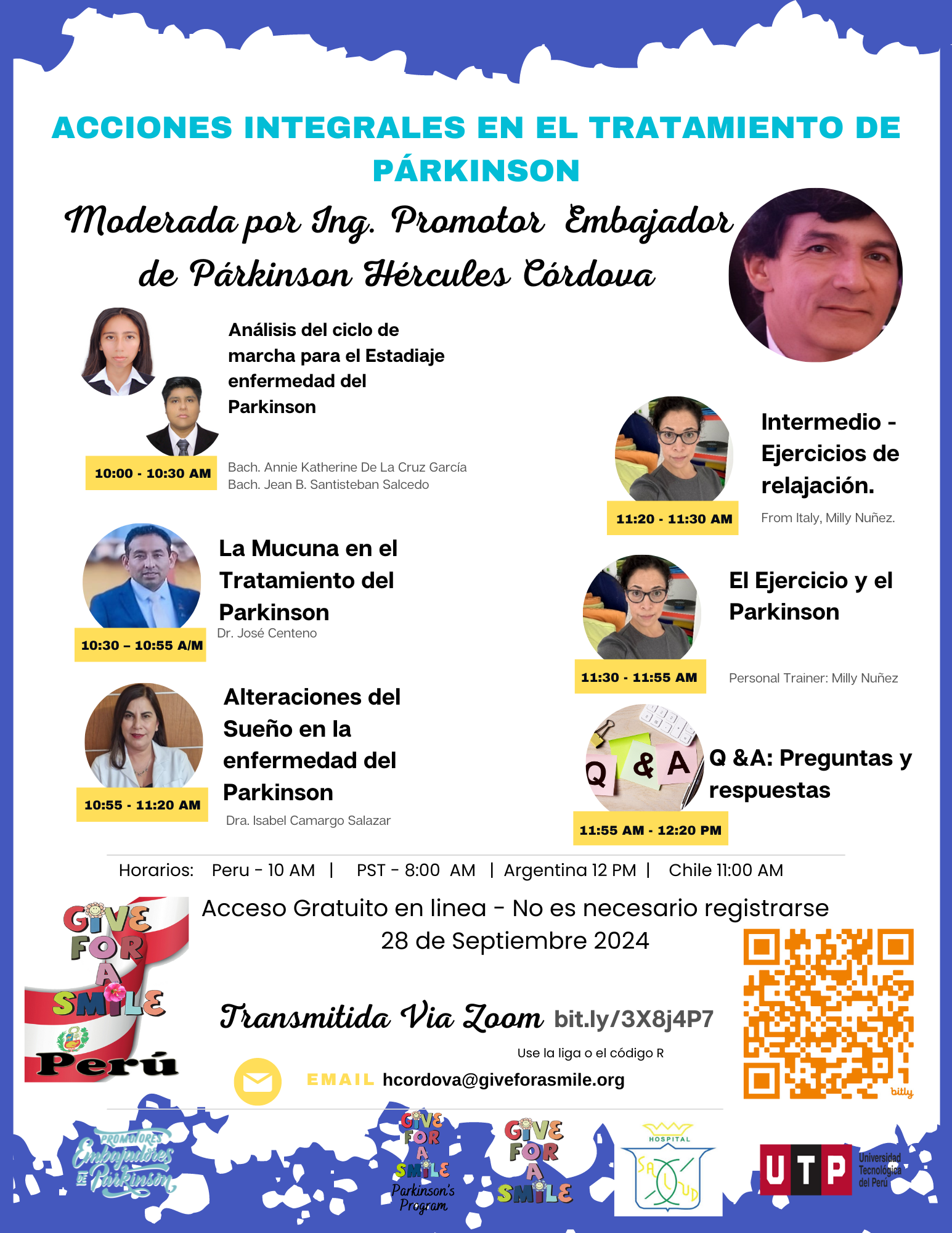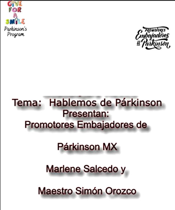 Acá presentámos un clandario de eventos de GFAS-Parkinson & Promotores/Embajadores de Párkinson. 08 Octubre 2024 Acciones Integrales en el Tratamiento del Párkinson en Perú Pinche aca para ver video 16 Marzo 2024 IV Encuentro de Párkinson Nicaragua Pinche aca para ver video 18 Agosto 2024 I ra Conferencia Internacional de Párkinson - No Video 10 Abril 2024 Entrevista Radial de Alejandra Flores Fundadora de FUPA Pinche aca para ver video 08 Octubre 2024 Conociendo al Párkinson - Dra Flores, Cd. Juárez. Promotora Embajadora de Párkinson Pinche aca para ver video 05 Febrero 2024 Entrevista de Hércules en TV Sol Piche aca para ver video 27 Abril 2024 Encuentro Virtual de Grupos de Ayuda Mutua de Personas con Párkinson Perú - Hércules Códvova Pinche aca para ver video 18 Agosto 2024 Entrevista Televisiva de TV PE con Promotor Embajador de Párkinson Hércules Córdova Pincha aca para ver video 09 Abril 2024 En El Mes del Párkinson, Promotora Embajadora de Párkinson en Nicaragua, Sheila Aguilar presentando en programa televisivo Canal 2 Pinche aca para ver video 04 Abril 2024 Promotor Embajador de Párkinson en el Perú, Constantivo Vargas Cornejo. Mensaje alusivo al més del Párkison. Pinche aca para ver video 27 Abril 2024 Promotor Embajador ed Párkinson en el Perú, Hércules Córdvova. Mensaje alusivo al més del Párkison. Pinche aca para ver video 11 Abril 2024 Promotora Embajadora de Párkinson en Nicaragua, Sheila Aguilar. Mensaje alusivo al més del Párkison. Pinche aca para ver video 01 Julio 2024 1ro de Julio, Promotores Embajadores de Párkinson en Mx. - PEP-JAL Marlene Salcedo y Don Simón Orozco con el tema, Hablando de Párkinson. Representantes de Dar por Una Sonrisa Pinche aca para ver video 25 Junio 2024 Dar por una Sonrisa / PEP - JAL, Una sucursal de Give or a Smile en México presentan a Marlene Salcedo y al Maestro Simon Orozco con el tema " Hablando de Parkinson" June 25 2024 Pinche aca para ver video 24 Abril 2024 Presentación Abril 2024 Hablemos de Párkinson con los Promotores Embajadores de Párkinson de Guadalajara México, Marlene Salcedo, Ambrosia Bracamontes y Simón Orozco, presentando "Hablando de Párkinson" para el grupo de Adulto Mayor Pinche aca para ver video